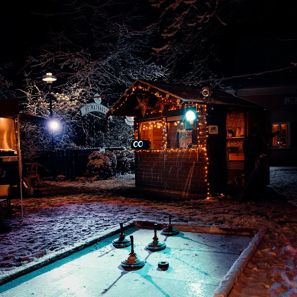Miete deine eigene Eisstockbahn im verschneiten Waldheim – mit Feuerschale, Glühwein und bester Stimmung. Ob als Firmenevent, Weihnachtsfeier oder private Runde: Hier wird Teamgeist gelebt und Winter genossen.